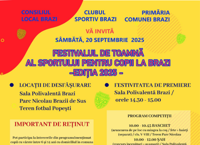 Festivalul de toamna al sportului pentru copii la Brazi – Editia 2025